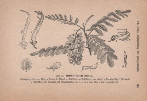 1891 - alter Druck, Holzschnitt - Robinie (falsche Akazie)