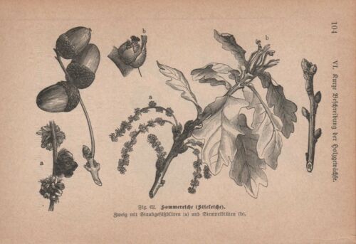 1891 - alter Druck, Holzschnitt - Sommereiche (Stieleiche)