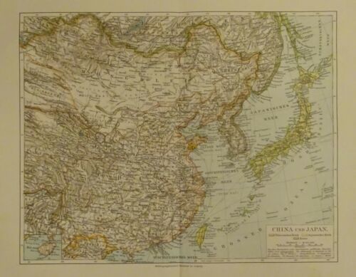 1898 - China und Japan, Landkarte - Chinesisches Reich, Japanisches Reich, Korea, alter Druck