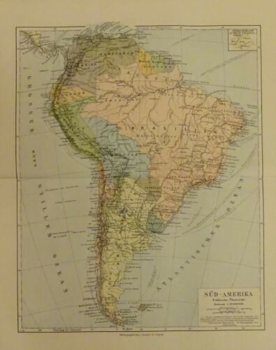 1898 - Süd-Amerika - politische Übersicht, Landkarte, alter Druck