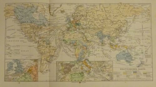 1898 - Weltverkehrs-Karte, Landkarte, alter Druck