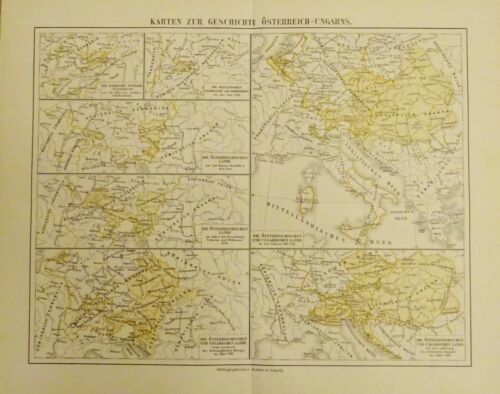 1899 - alter Druck - Karten zur Geschichte Österreich-Ungarns