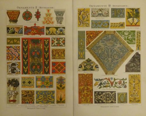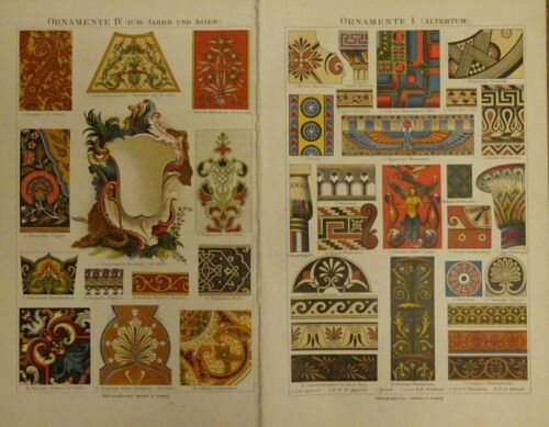 1899 - alter Druck - Ornamente Altertum, Mittelalter, Renaissance, ...
