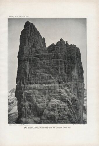 1908 - alter Druck - Die kleine Zinne (Westwand) von der Großen Zinne aus