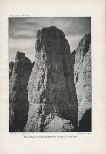 1908 - alter Druck - Die Nordwand der Kleinen Zinne von der Punta di Frida aus
