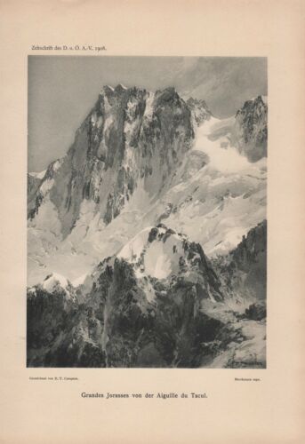 1908 - alter Druck - Grandes Jorasses von der Aiguille du Tacul