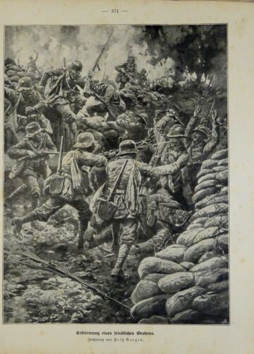 1917 - alter Druck - Erstürmung eines feindlichen Grabens (Zeichnung von Fritz Bergen)