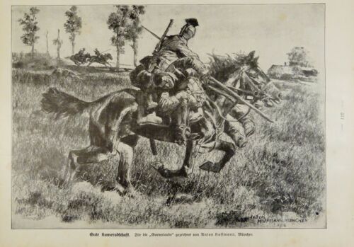 1917 - alter Druck - Gute Kameradschaft (Für die "Gartenlaube" gezeichnet von Anton Hoffmann, München)