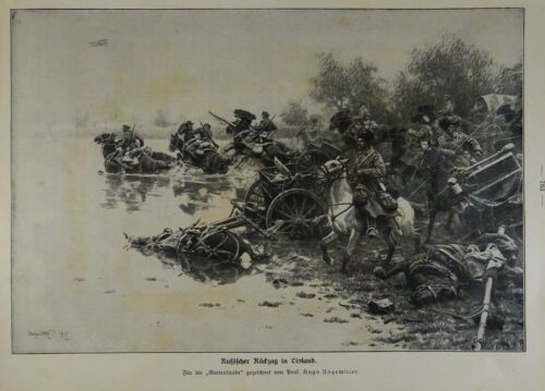 1917 - alter Druck - Russischer Rückzug in Livland (Für die "Gartenlaube" gezeichnet von Prof. Hugo Ungewitter)