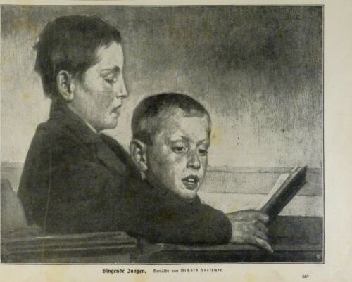 1917 - alter Druck - Singende Jungen (Gemälde von Richard Hoelscher)