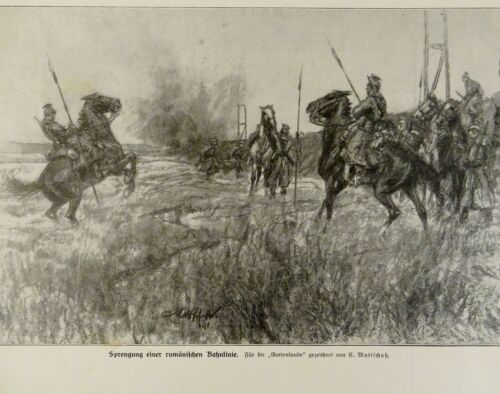 1917 - alter Druck - Sprengung einer rumänischen Bahnlinie (Für die "Gartenlaube" gezeichnet von E. Mattschaß)