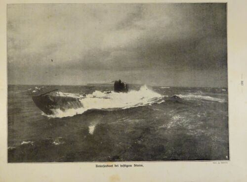 1917 - alter Druck - Unterseeboot bei heftigem Sturm