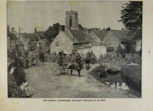 1917 - alter Druck - Vom westlichen Kriegsschauplatz: Abtransport Gefangener an der Aisne