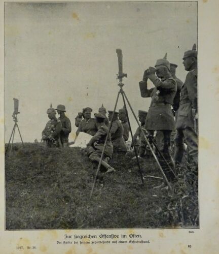 1917 - alter Druck - Zur siegreichen Offensive im Osten: Der Kaiser bei seinem Frontbesuche auf einem Gefechtsstand