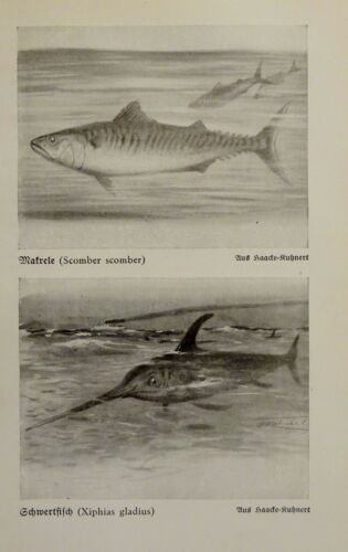1926 - Fische - Makrele, Schwertfisch / Schlammspringer, Seehase - alter Druck