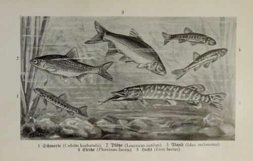 1926 - Fische - Wels, Pirana / Schmerle, Plötze, Aland, ... - alter Druck