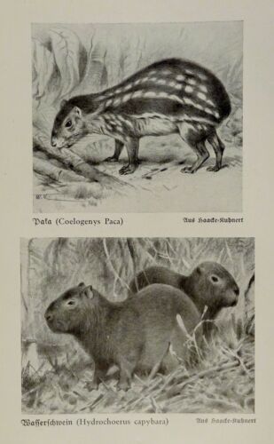 1926 - Paka, Wasserschwein / Stachelschwein, Aguti - alter Druck