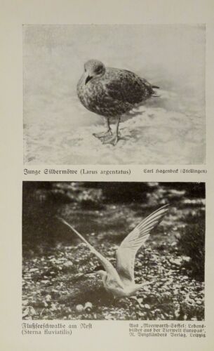 1926 - Silbermöwe, Flußseeschwalbe / Ringelgänse, Teichhuhn - alter Druck