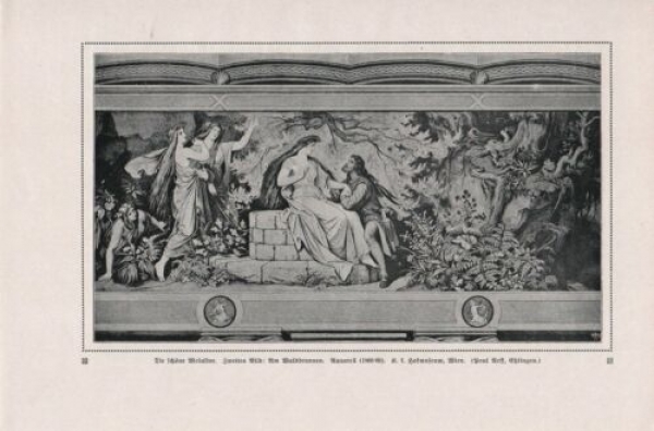 Alter Druck um 1920 - Die schöne Melusine. Zweites Bild: Am Waldbrunnen