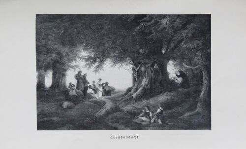 Alter Druck von 1917 - Abendandacht / Der alte Hafner