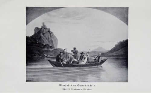Alter Druck von 1917 - Überfahrt am Schreckenstein / Der Watzmann