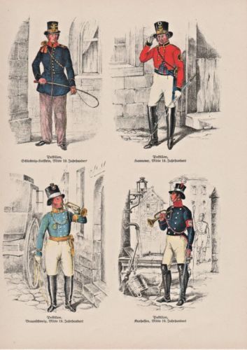 Alter Druck von 1939 - Uniform Postillon Schleswig-Holstein, Hannover, Braunschweig, Kurhessen Mitte 19. Jahrhundert