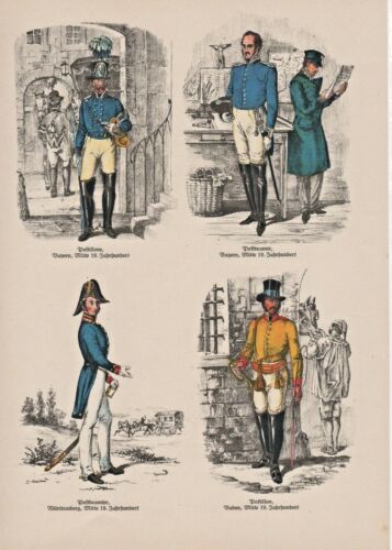 Alter Druck von 1939 - Uniform Postillone Bayern, Württemberg, Baden Mitte 19. Jahrhundert