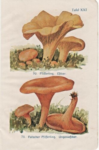 Alter Farbendruck von 1918 - Pfifferling, Falscher Pfifferling