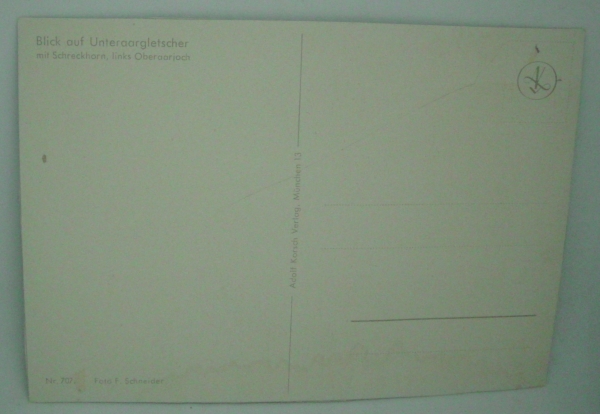 Ansichtskarte Blick auf Unteraargletscher mit Schreckhorn, links Oberaarjoch