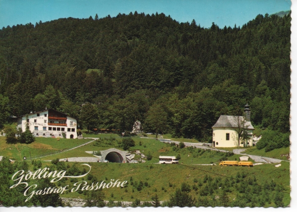 Ansichtskarte Golling, Gasthof Passhöhe und Wallfahrtskirchlein Maria Brunneck