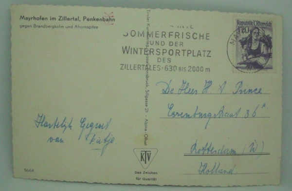 Ansichtskarte Mayrhofen im Zillertal, Penkenbahn (1962)