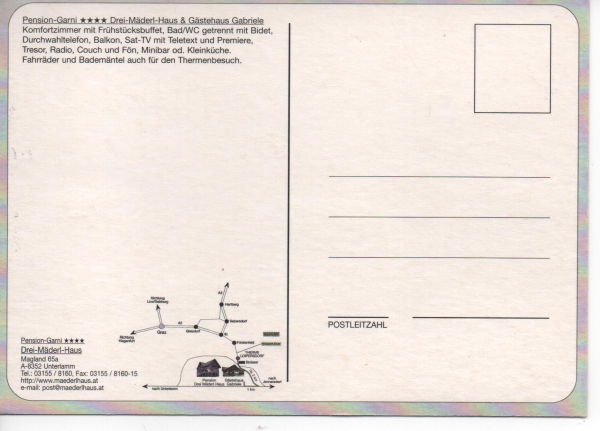 Ansichtskarte Pension Garni, Drei-Mäderl-Haus, Unterlamm, Loipersdorf, Steiermark