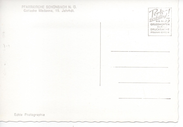 Ansichtskarte Pfarrkirche Schönbach, Niederösterreich - Gotische Madonna, 15. Jahrhdt.