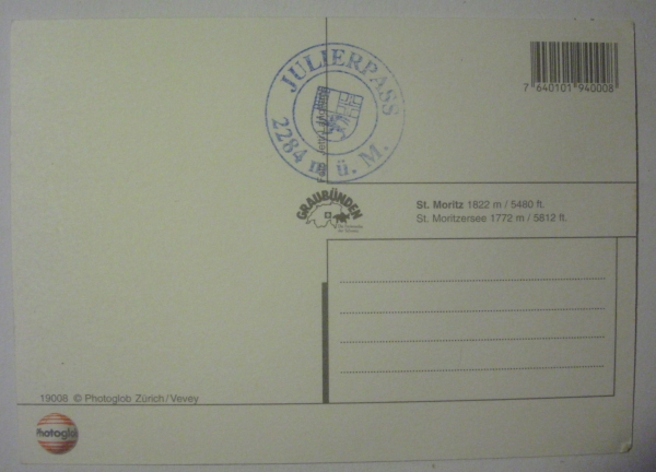 Ansichtskarte St. Moritz 1822 m, Moritzersee 1772 m
