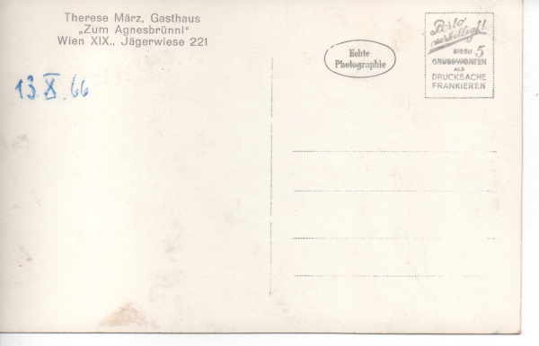 Ansichtskarte Therese März, Gasthaus "Zum Agnesbrünnl", Wien