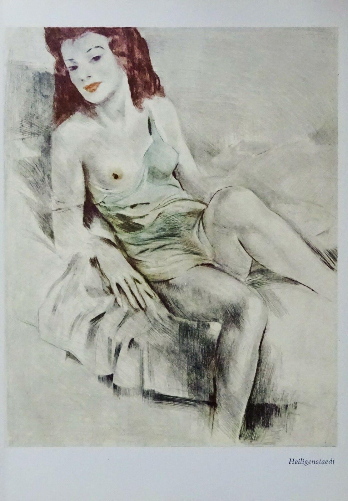 Erotisches Frauenbildnis, sehr schöner alter Druck von 1967