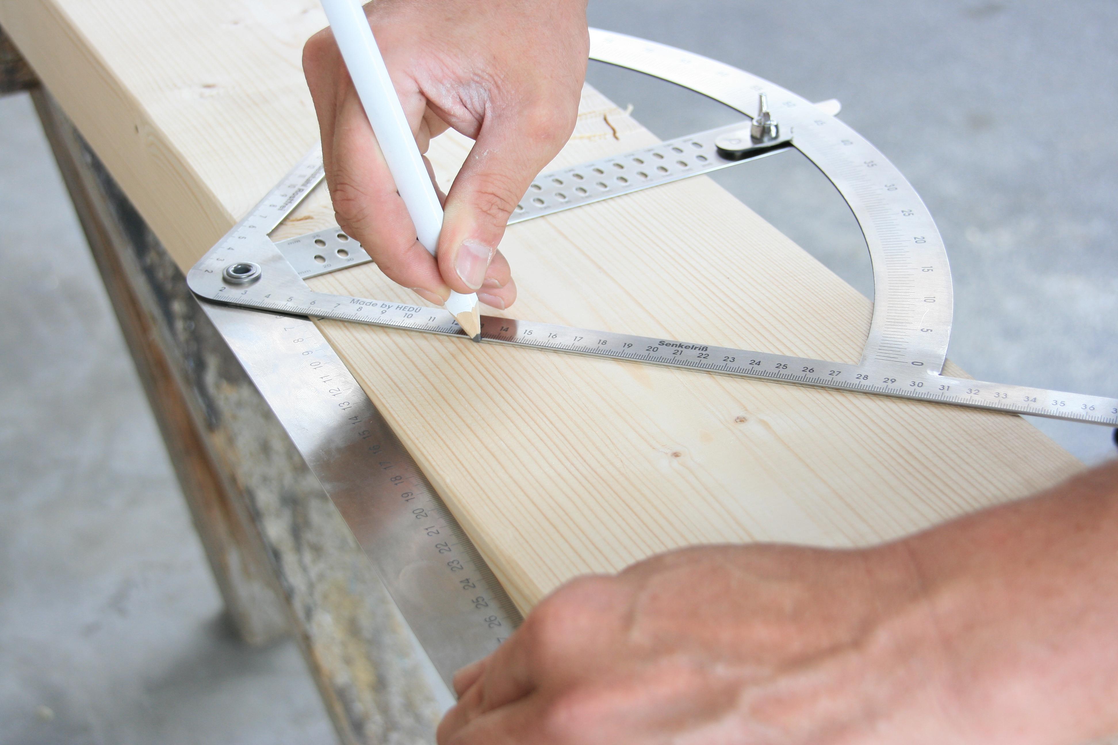 Zu den schnellsten Anreißmethoden gehört das Anreißen mit dem Anreißgerät Alpha. Es kann bei allen Abbundarbeiten verwendet werden und hat sich tausendfach bewährt, sowohl beim Anreißen von Schiftern, Gratsparren und geraden Treppen, als auch beim Anreißen von einfachen und doppelten Versätzen. Stellschmiegen und ähnliche Hilfsmittel werden nicht mehr benötigt.