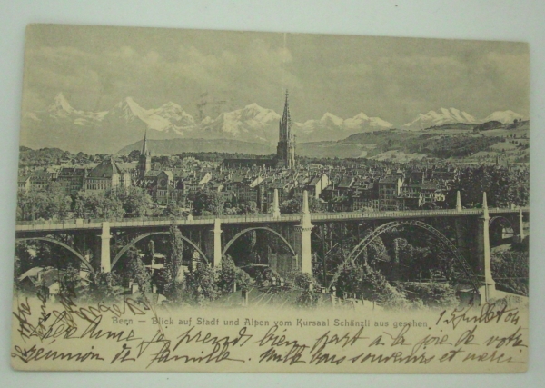 Postkarte Bern - Blick auf Stadt und Alpen vom Kursaal Schänzli aus gesehen (1904)
