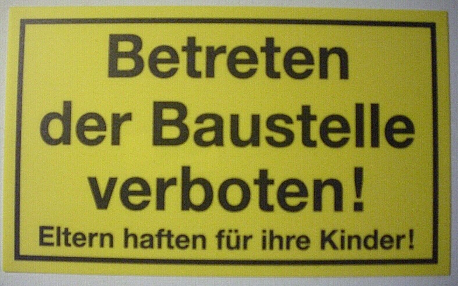 Schild "Betreten der Baustelle verboten! Eltern haften für ihre Kinder!"